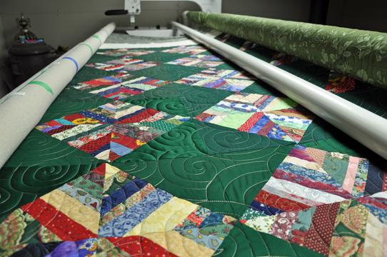 Celebrating Bruce February 5, 2014 by Life in the Dog House 0 Susan made this quilt for a close family friend who is in the hospital. I did a free hand edge-to-edge swirl design.