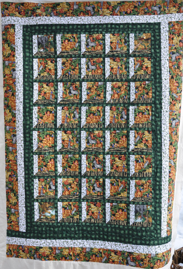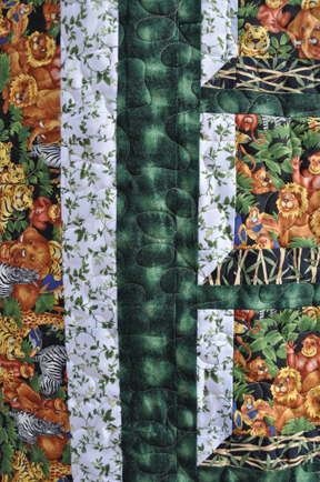 On this beautiful, green animal themed quilt I used a pantograph called puppy paws: