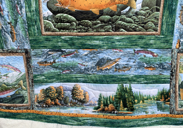 Fish Panel August 7, 2020 by Life in the Dog House 0 Shirley made this quilt top for her Dad. He loves fishing. I custom quilted it using Glide thread.