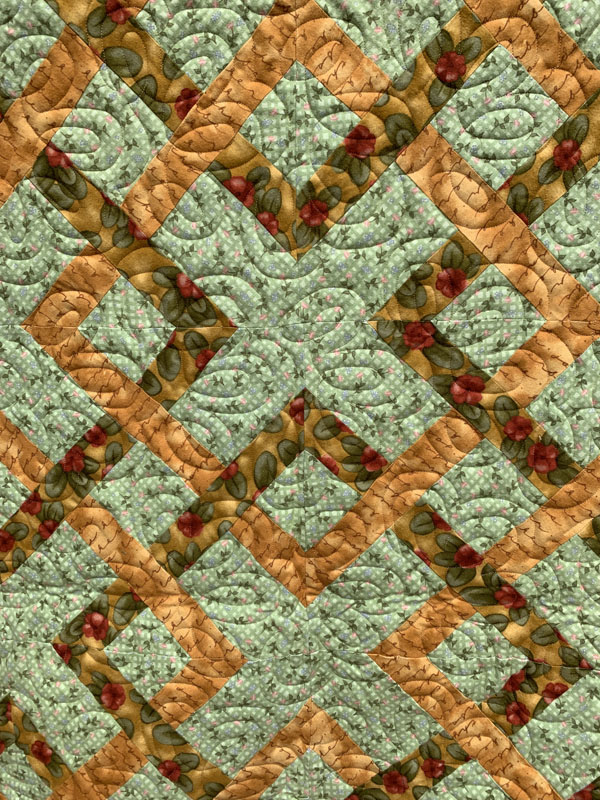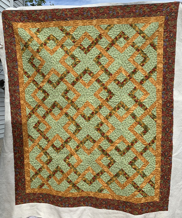 Green and Gold Linked Squares August 10, 2020 by Life in the Dog House 0 Another beautiful quilt top made by Shirley. I used E2E design Knit 1 Purl 2 and Glide thread to quilt it.
