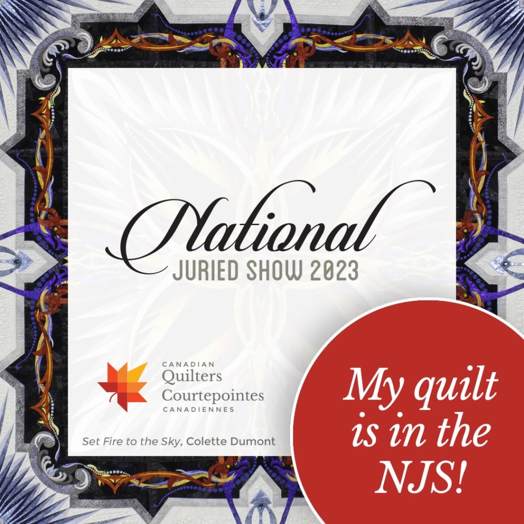 This summer I received at email from CQA informing me that they were compiling a selection of juried entries into a “Best of Quilting in Canada”collection and they wanted to include my piece. The quilts would be exhibited in the New England Quilt Museum (NEQM) in Lowell, Massachusetts, from January 17 to May 9, 2023. Needless to say, I was shocked and thrilled.