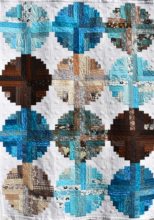 This is a “boys” version of the High Tea quilt pattern. I used a modern edge to edge design called Bauhaus. It really complements the Zen Chic Barcelona fabric.