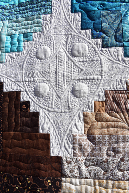 I had no plan when I loaded this quilt on the frame. I just grabbed some rulers and started making shapes and filling them in with dense quilting.